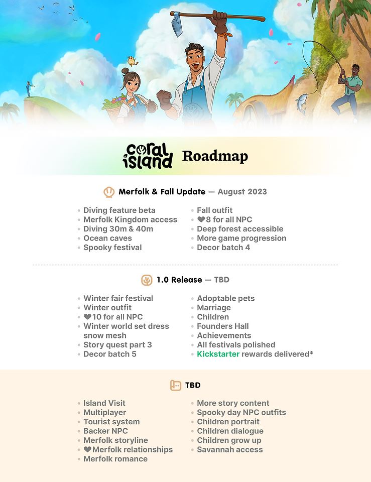 I also have a lot of faith in Stairway Games’ ability to deliver a complete game because they have released a roadmap that explains an approximate timeline for many of their goals. At full release, I think Coral Island will become my favorite game, because it’s a fantastic, adorable farming sim that I will be able to play with my friends! It might be a while, but I think it’s worth waiting for.